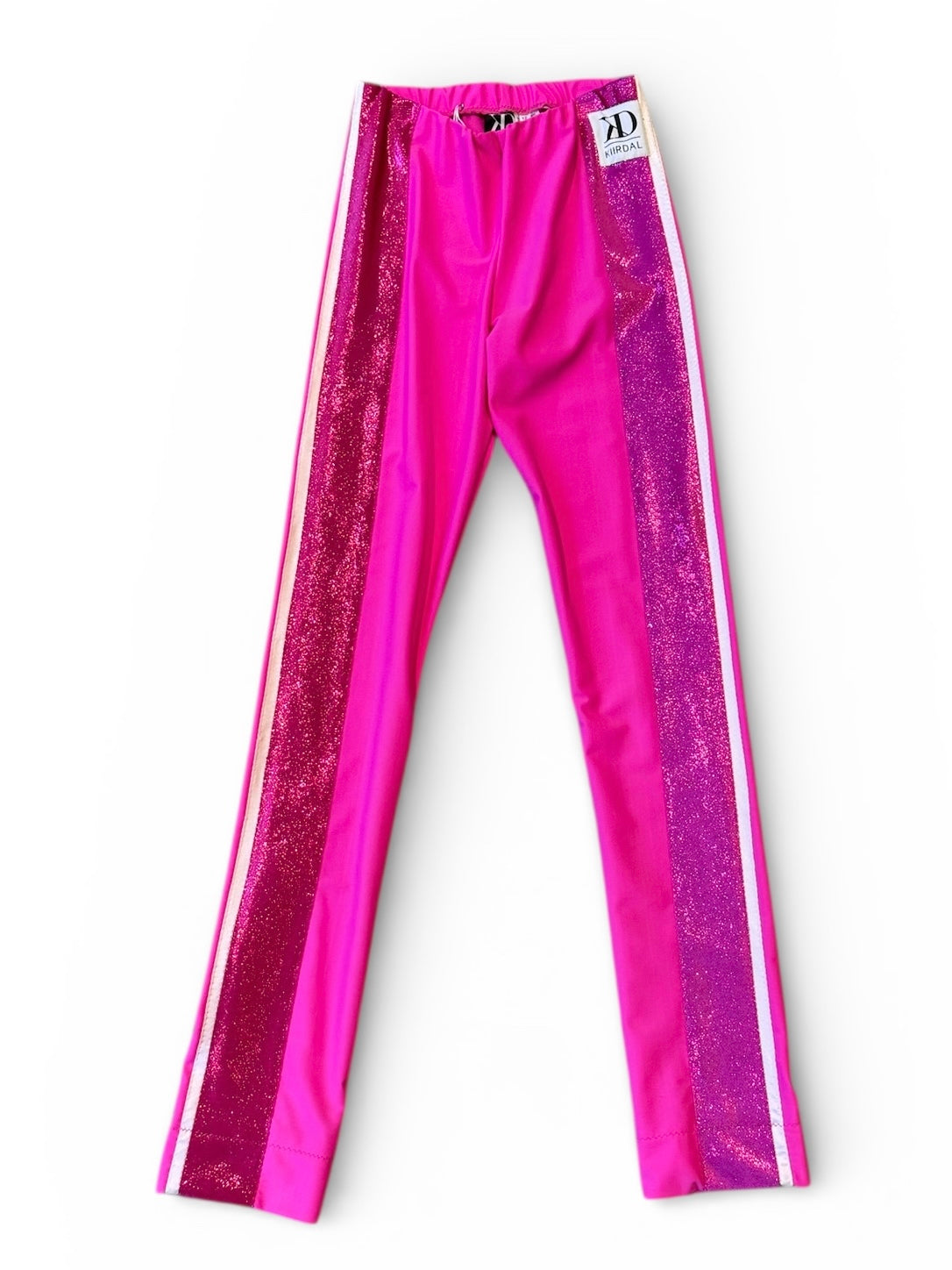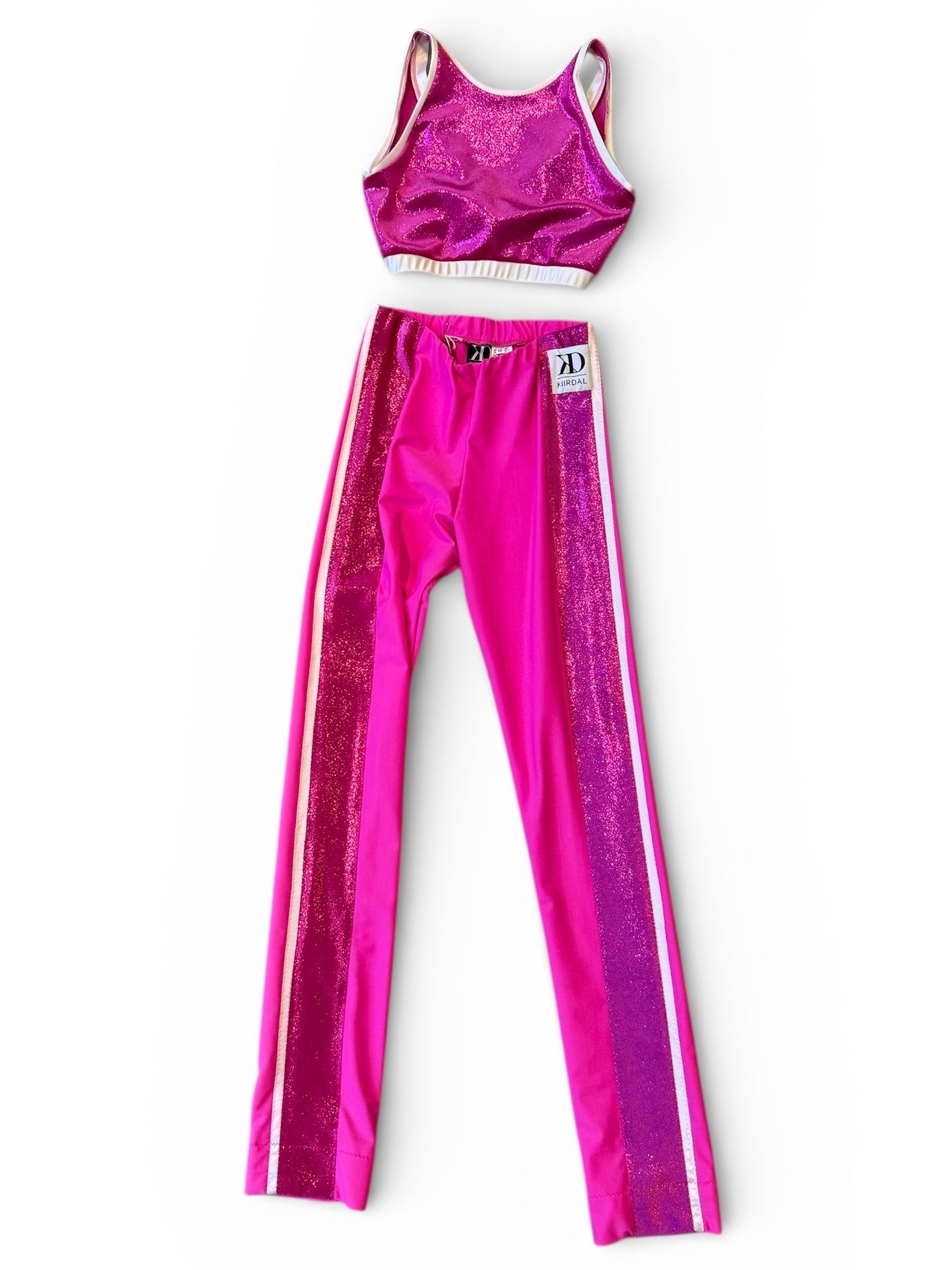 Lycra i farven Lipstick og velour med glittereffekt.